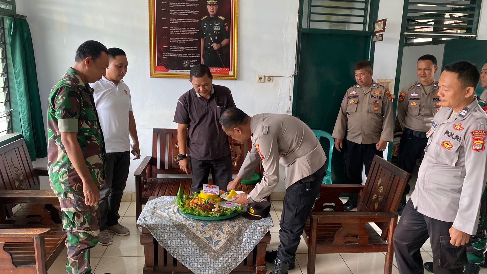 Setelah pemberian tumpeng, acara dilanjutkan dengan kegiatan silaturahmi dan ramah tamah antara personel Polsek dan Koramil Kedondong, mencerminkan hubungan yang semakin solid antara kedua institusi keamanan ini.